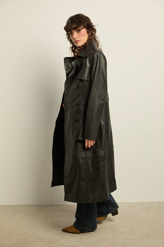 Gabardina de cuero negro