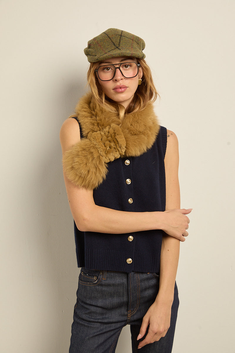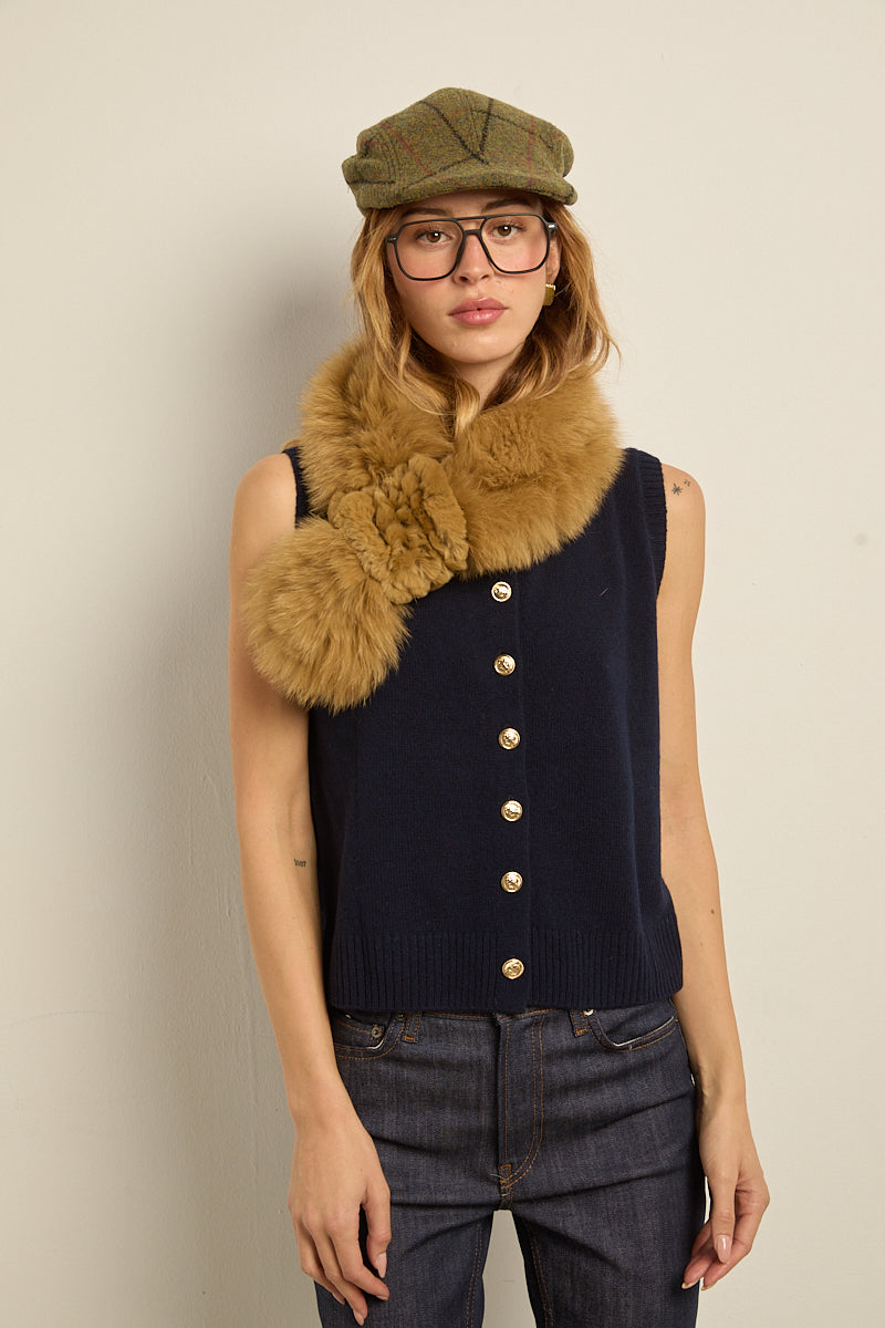 Bufanda de piel natural de zorro tricotado, con pasador de piel rex para cerrarla en torno al cuello. Viene con un broche removible incluido en la zona del pasador (no figura en la foto)