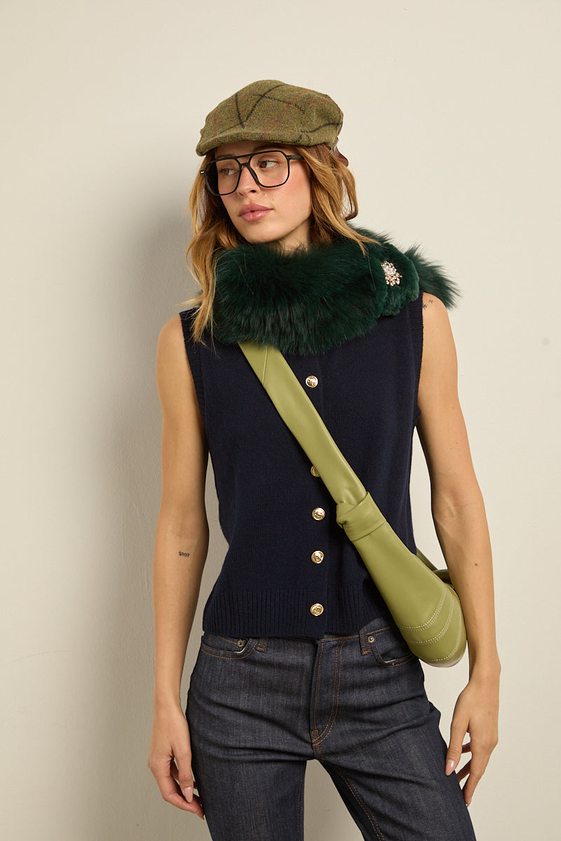 Bufanda de piel natural de zorro tricotado, con pasador de piel rex para cerrarla en torno al cuello. Viene con un broche removible incluido en la zona del pasador (no figura en la foto)