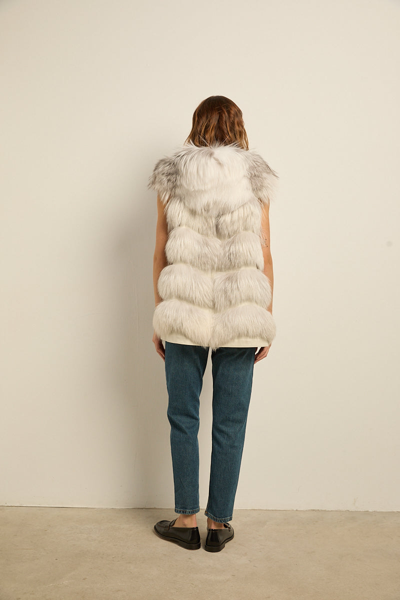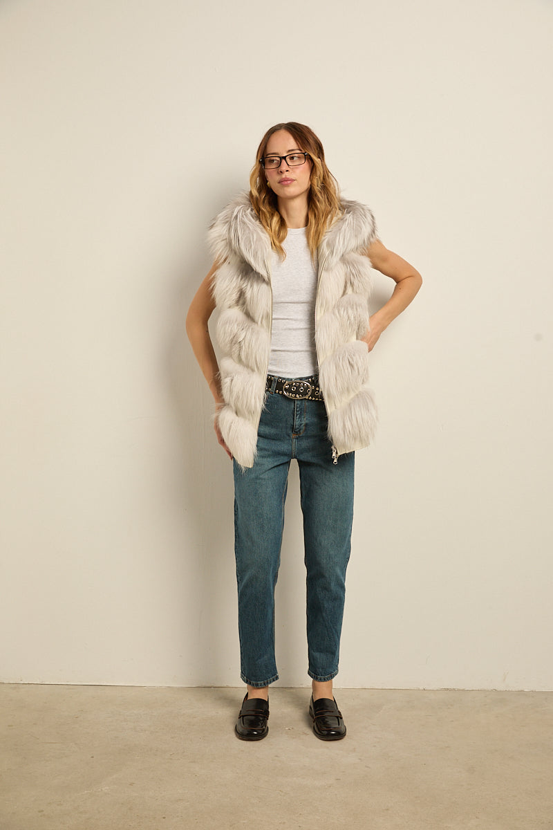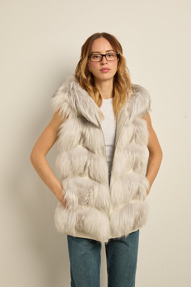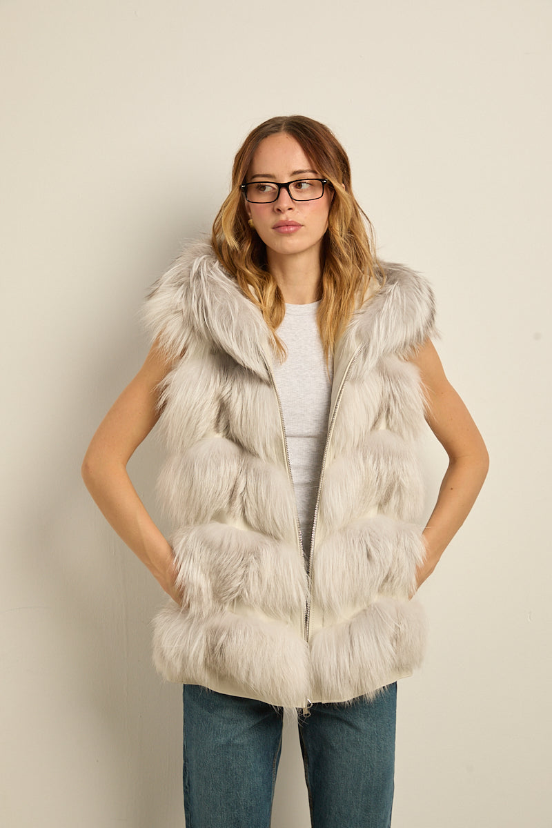 Chaleco con capucha de zorro natural shadow. Cierre con cremallera. Bolsillos laterales.