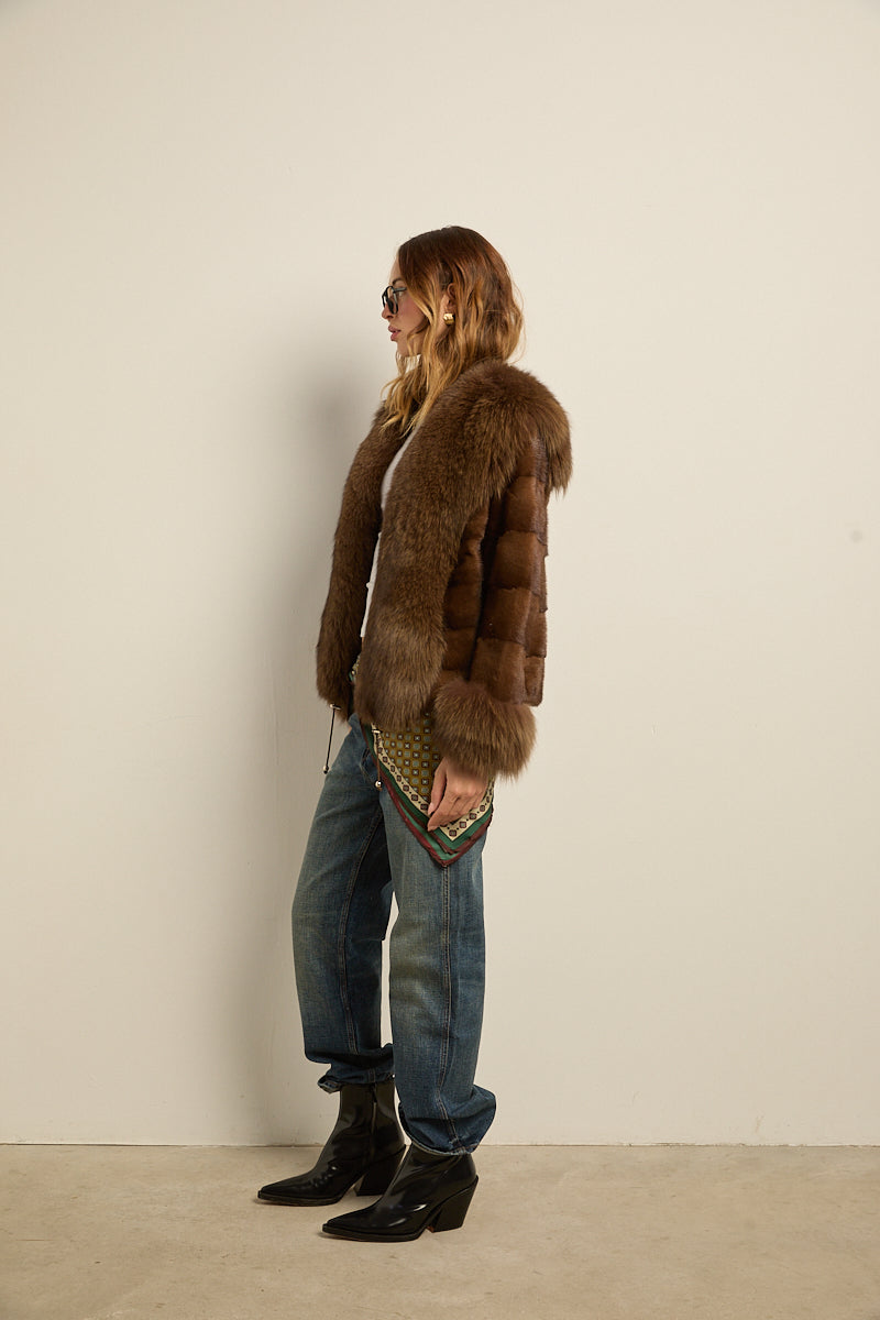 Chaqueta visón demi con zorro marrón DIVA COLLECTION