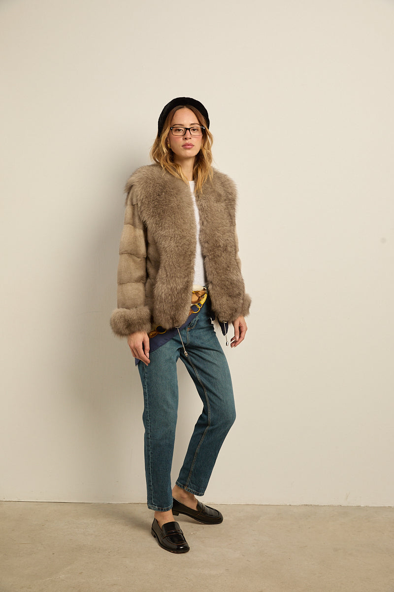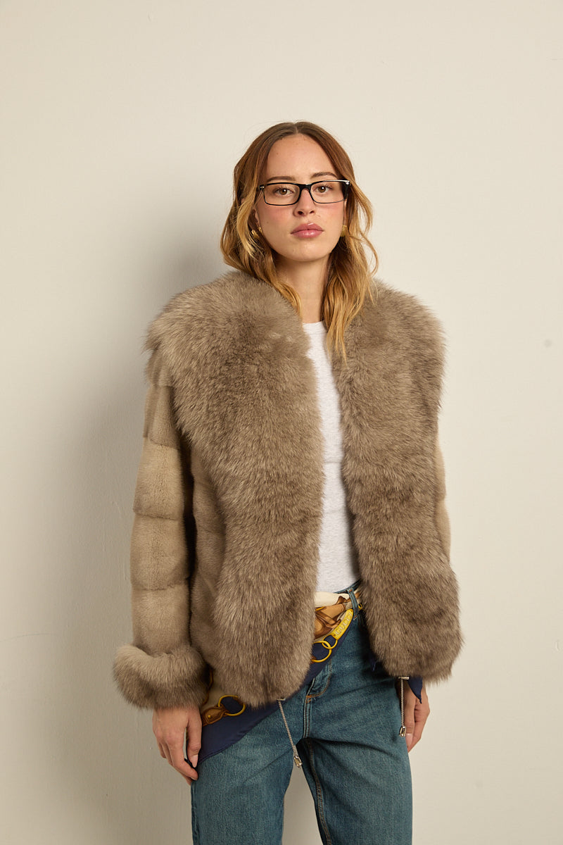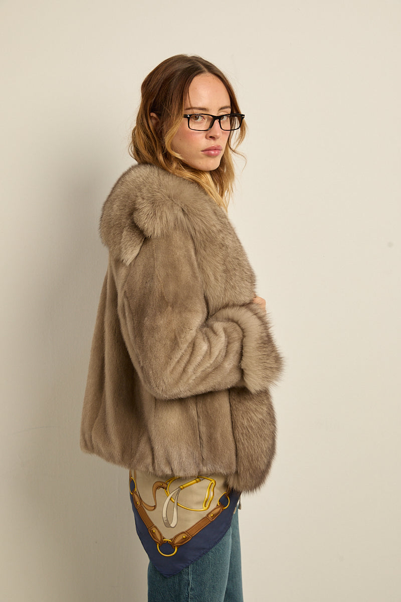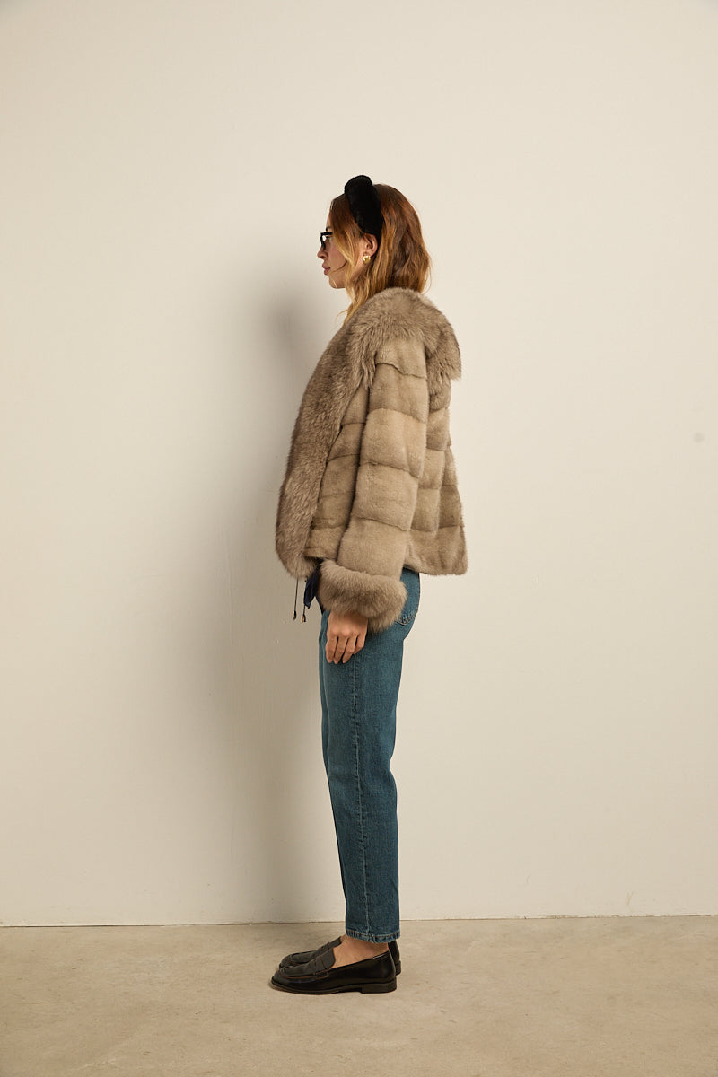 Chaqueta de piel de visón con ribeteado en cuello y puños de zorro natural