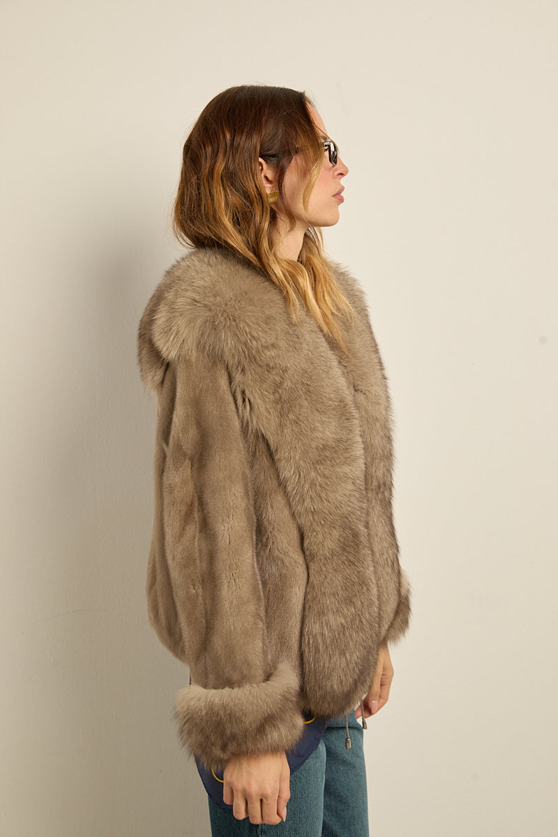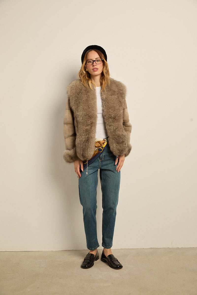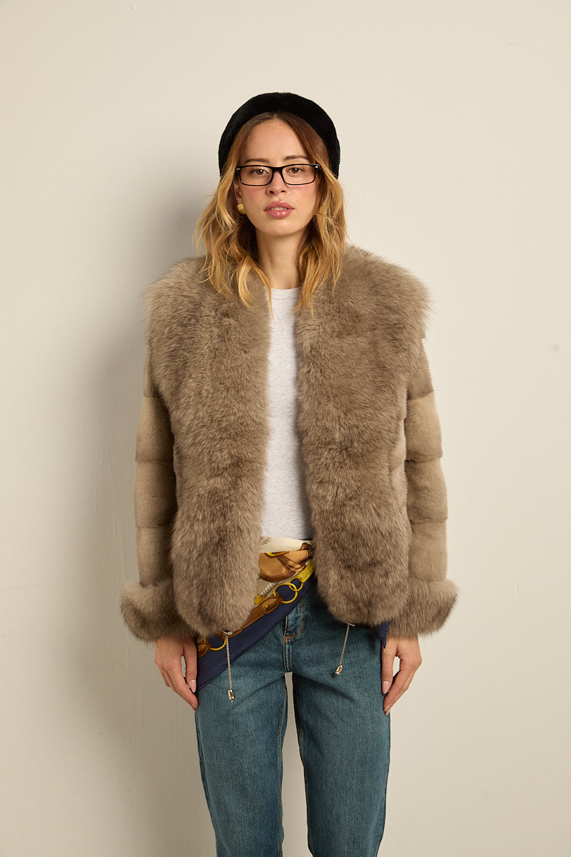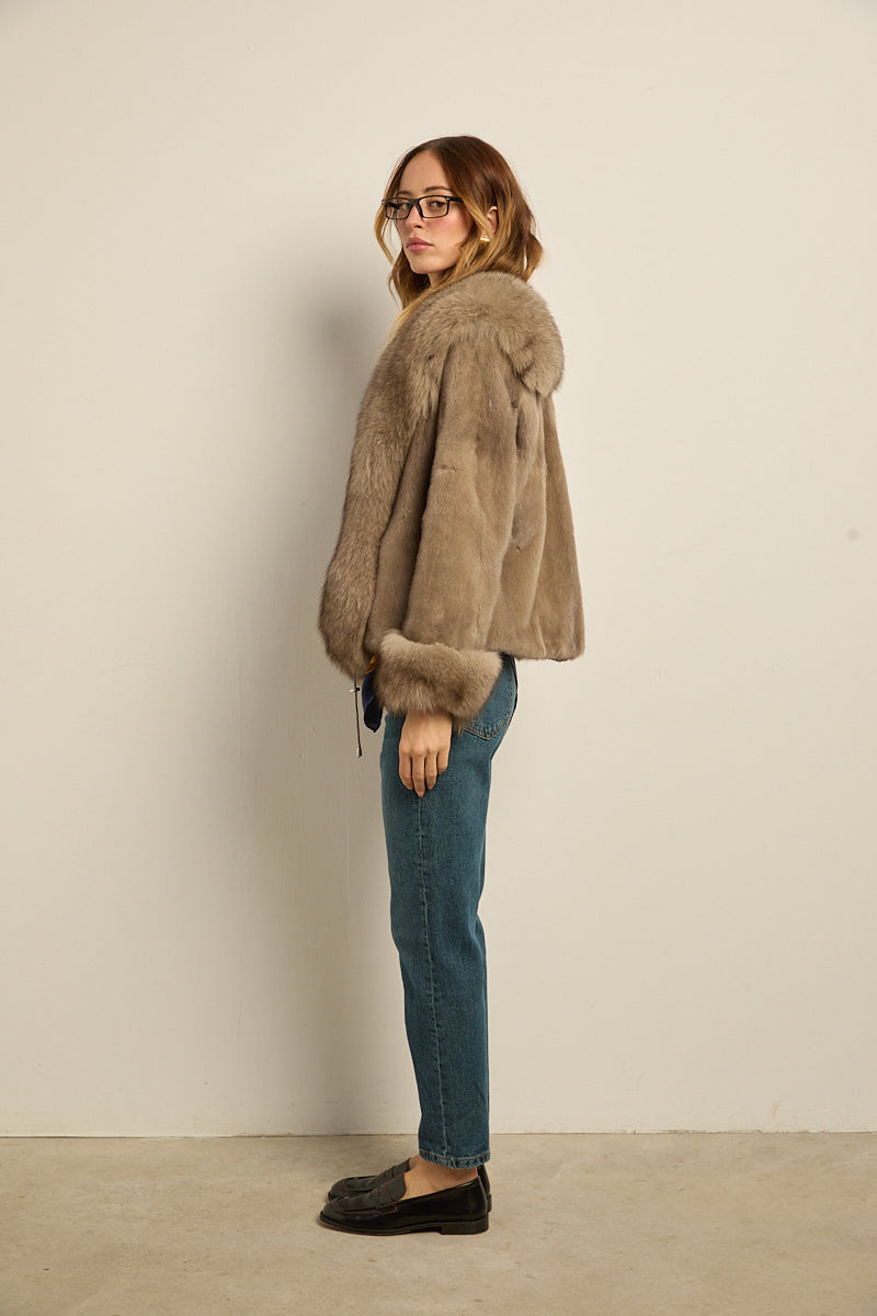 Chaqueta de piel de visón con ribeteado en cuello y puños de zorro natural