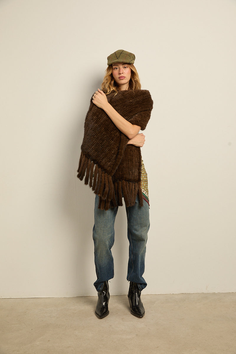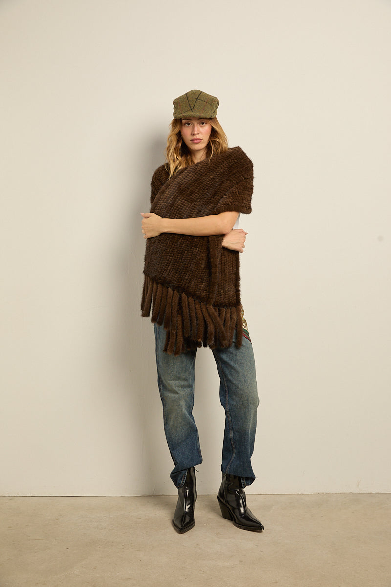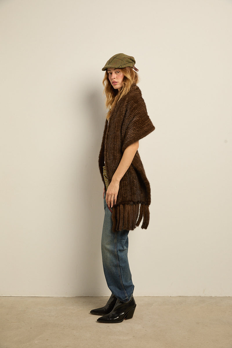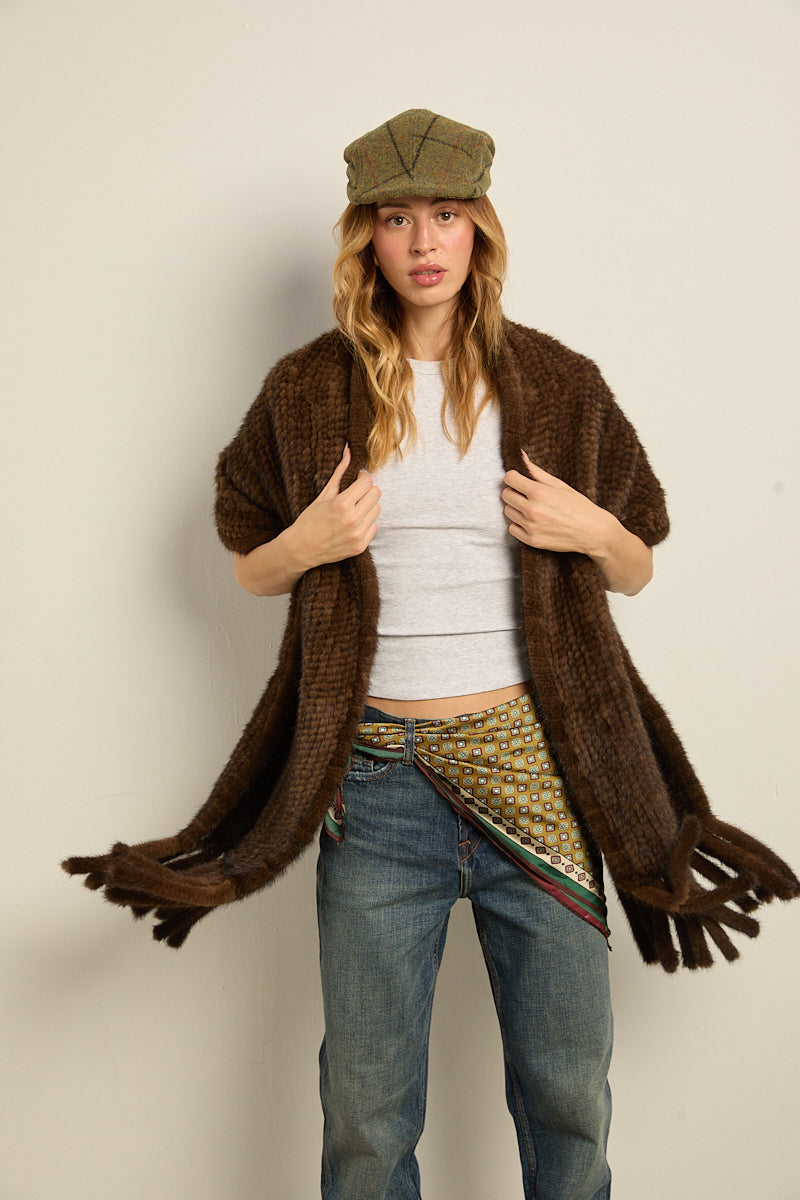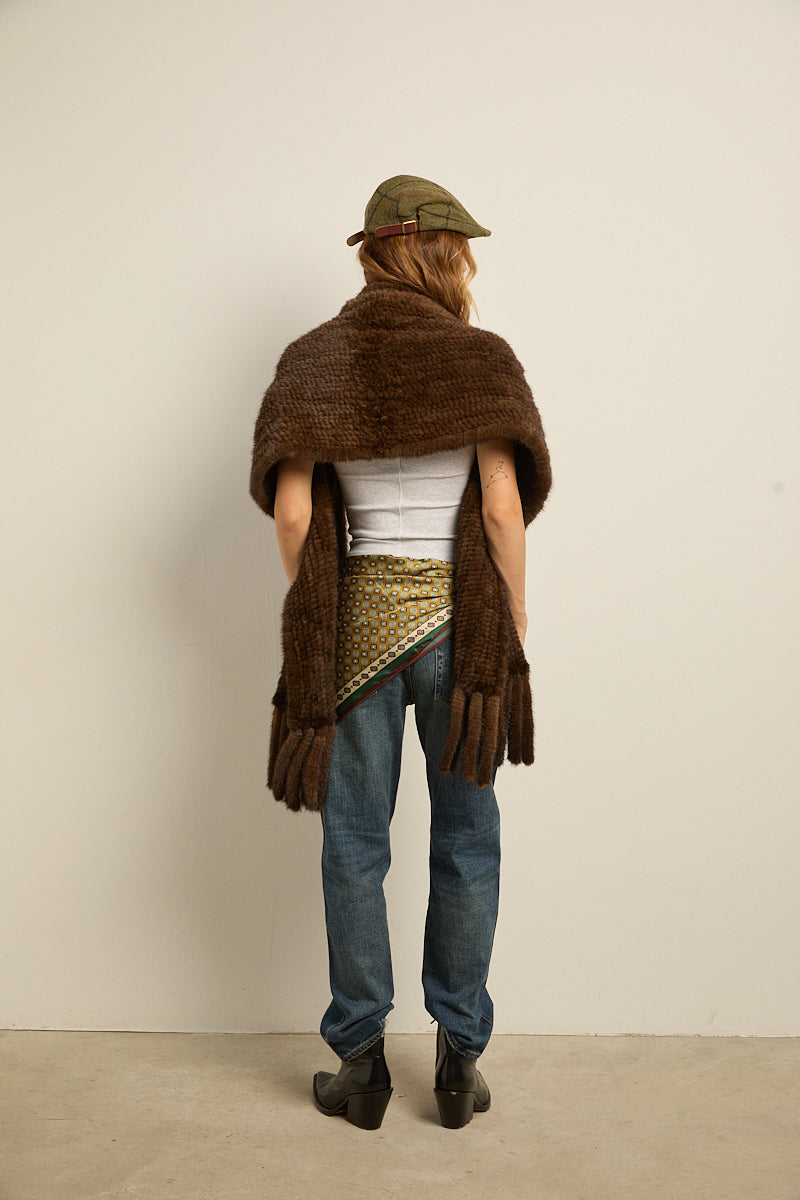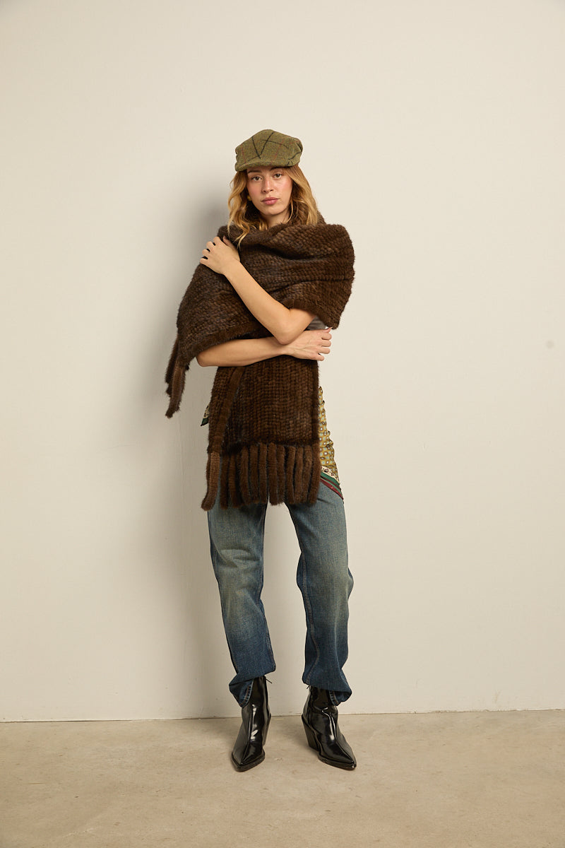 Estola tricotada de visón natural color marrón demi. Su tamaño la hace apta para usar también como bufanda.